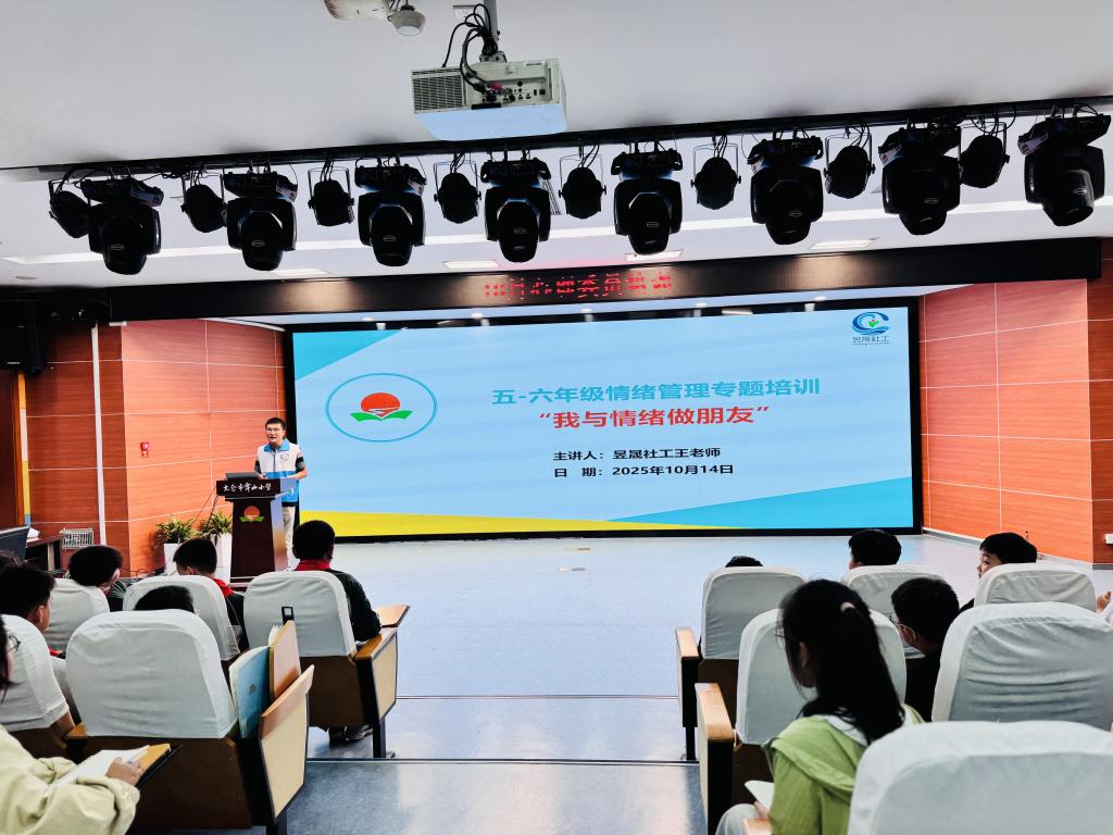 10月14日学太仓市昱晟社会工作发展中心王森老师对五、六年级的心理委员主要围绕“我与情绪做朋友”主题开展讲座,从破冰之旅,认识情绪——深入探究,情绪的重要性——寻找办法,做好情绪管理三个部分展开。借助生动视频呈现情绪产生的机制,结合案例解析情绪对决策、人际关系的影响力。引入"情绪红绿灯"、"换个镜片看世界"等方法,引导同学们将负面情绪转化为成长契机。